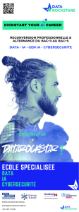 Nous sommes DATAROCKSTARS, une école nouvelle génération dédiée à la Data, à l’Intelligence Artificielle et à la Cybersécurité. Notre mission : révéler les talents et accompagner les reconversions vers les métiers tech d’avenir.